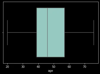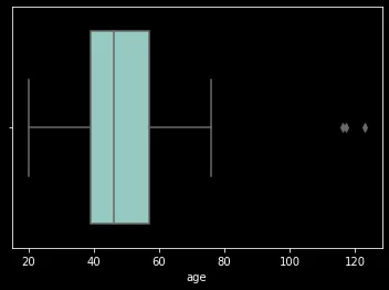 | sns.boxplot(data=customer_df, x='age');