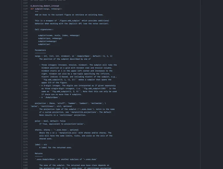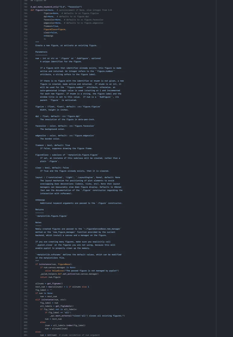 내부에 들어가 보면 우리가 pyplot을 통해 자주 사용하는 figure()나 subplot() 등의 유용한 함수들이 얼마나 정교하게 잘 개발되어 있는지 살펴볼 수 있습니다.