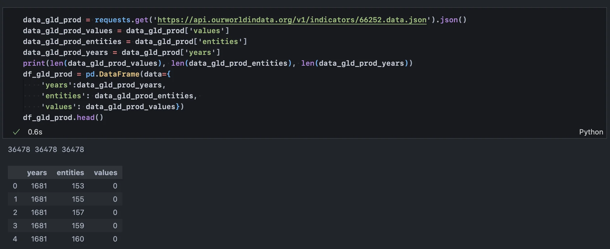 Our World in Data - 1681년부터의 금 생산량 데이터
