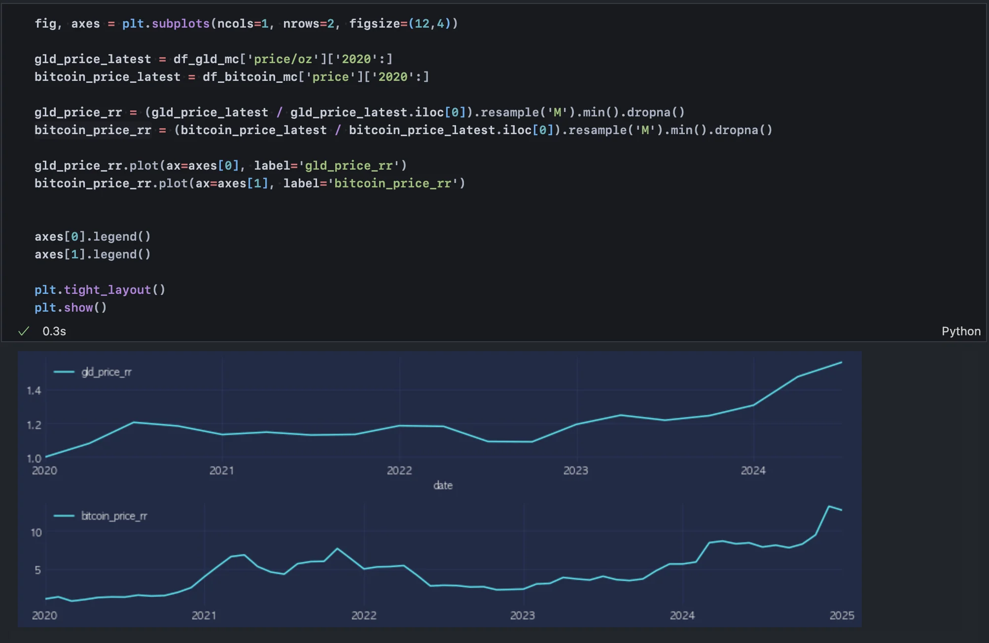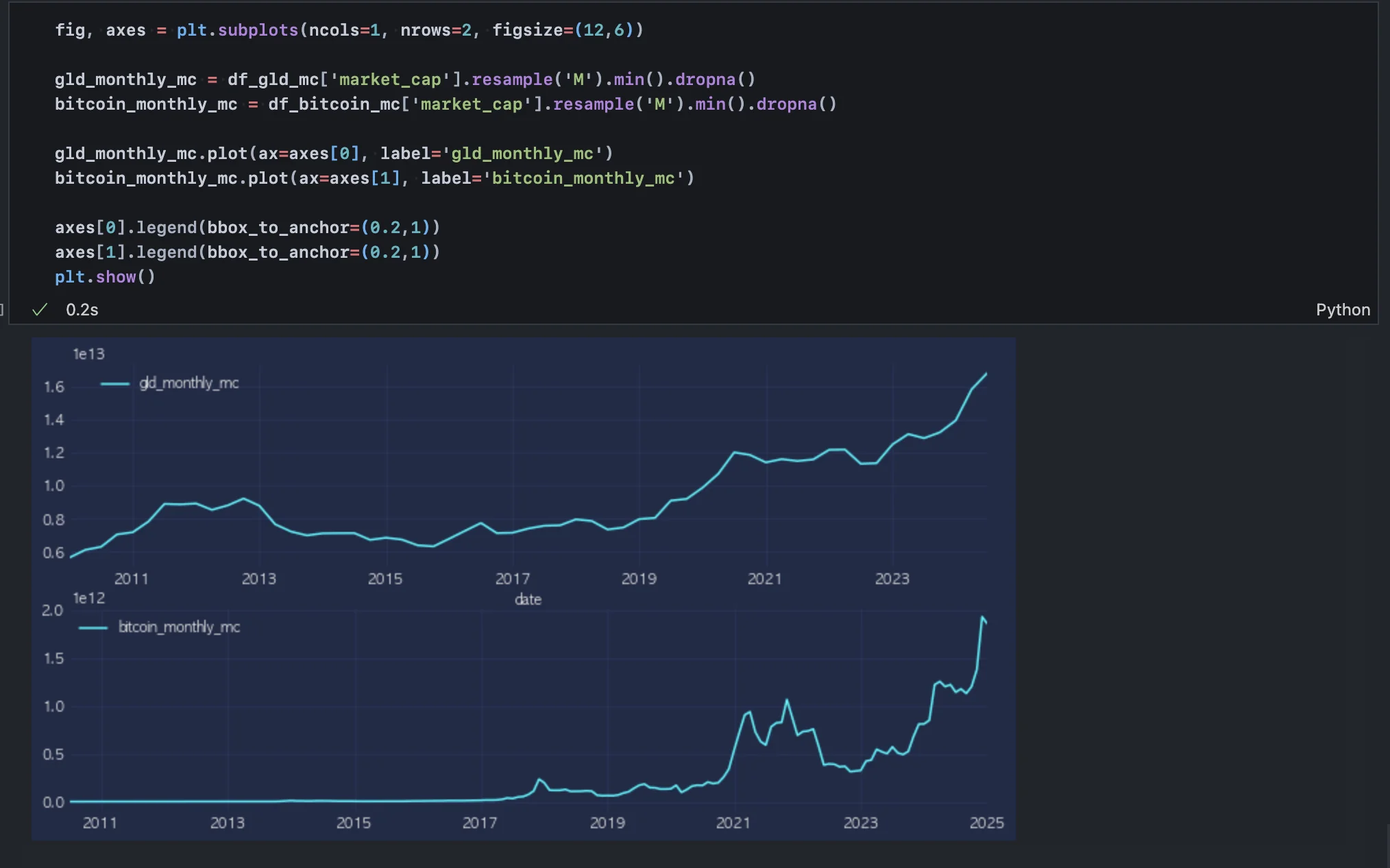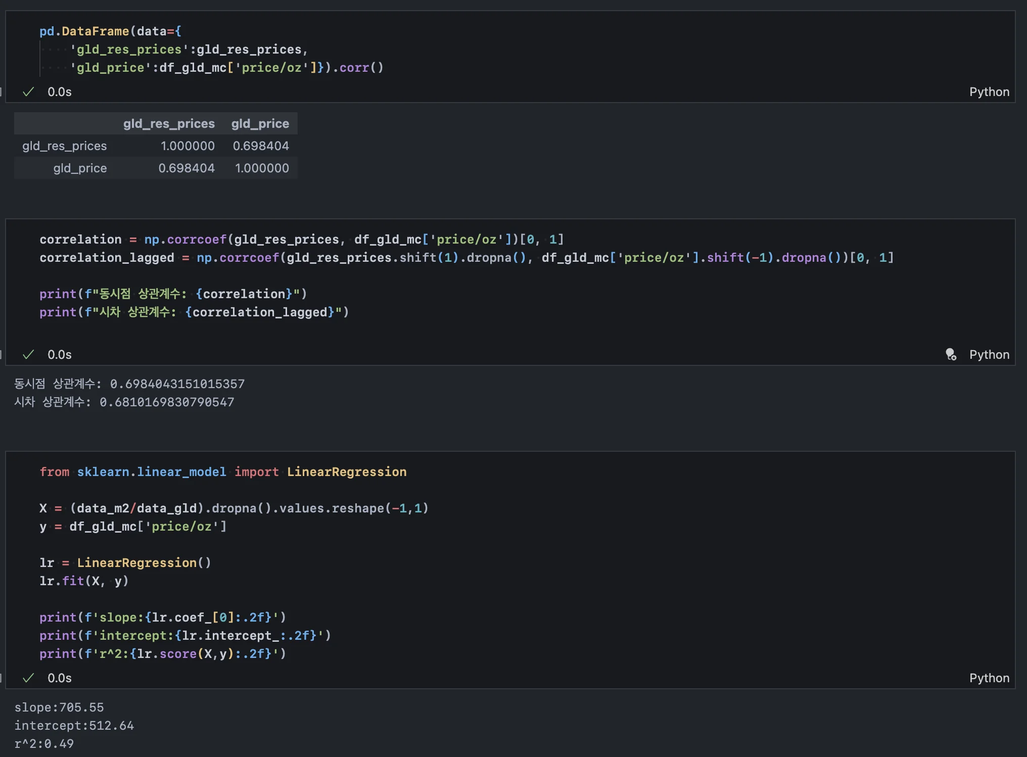 위 작업을 통해 2024년 3분기까지의 금 가격 및 시총 데이터를 모두 추출했다.