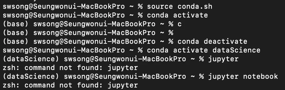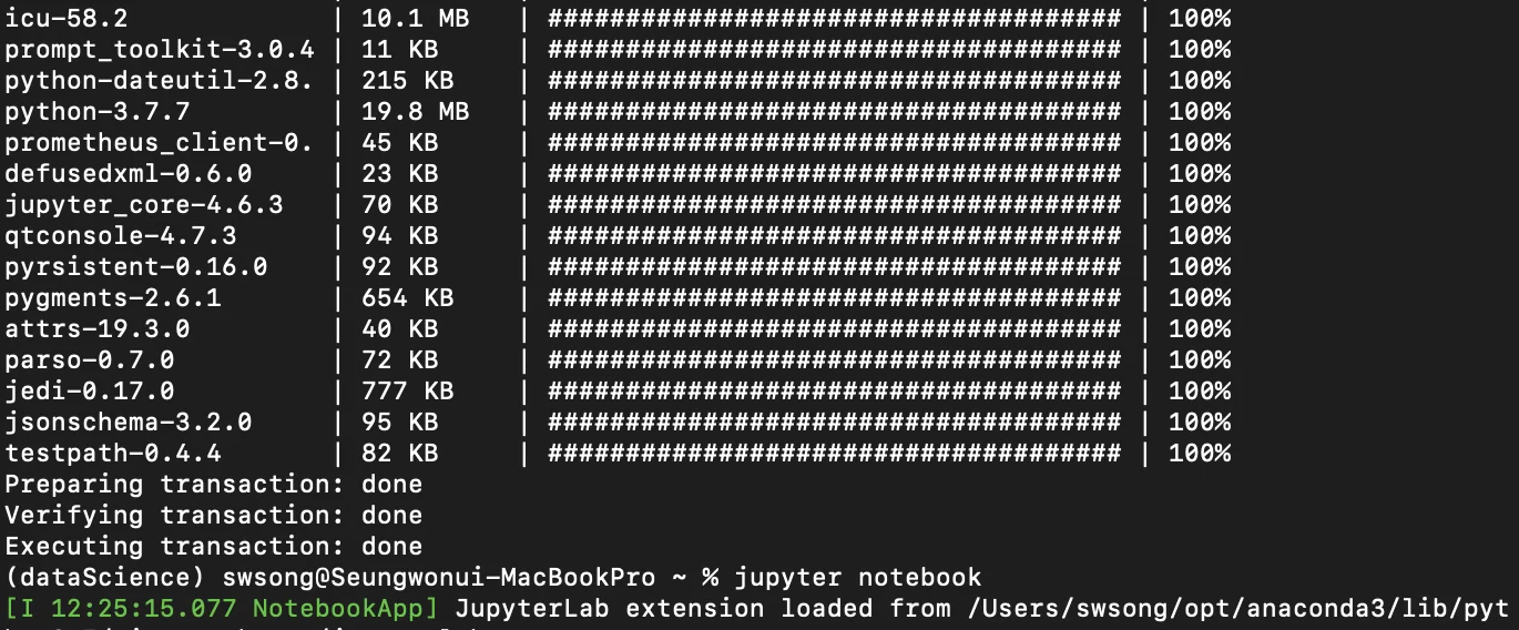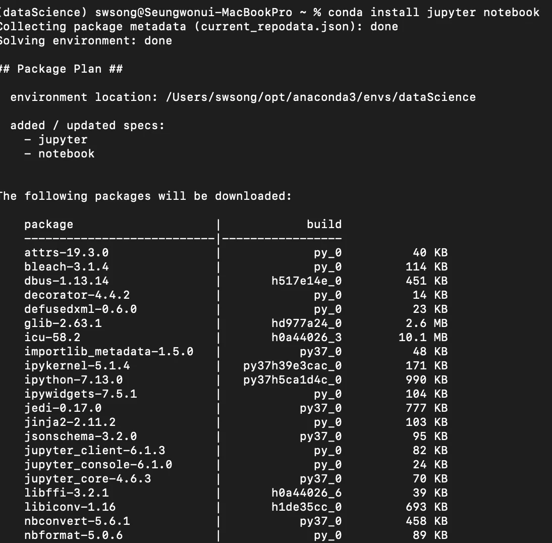 임의의 가상 환경 (name:dataScience)을 실행한다.