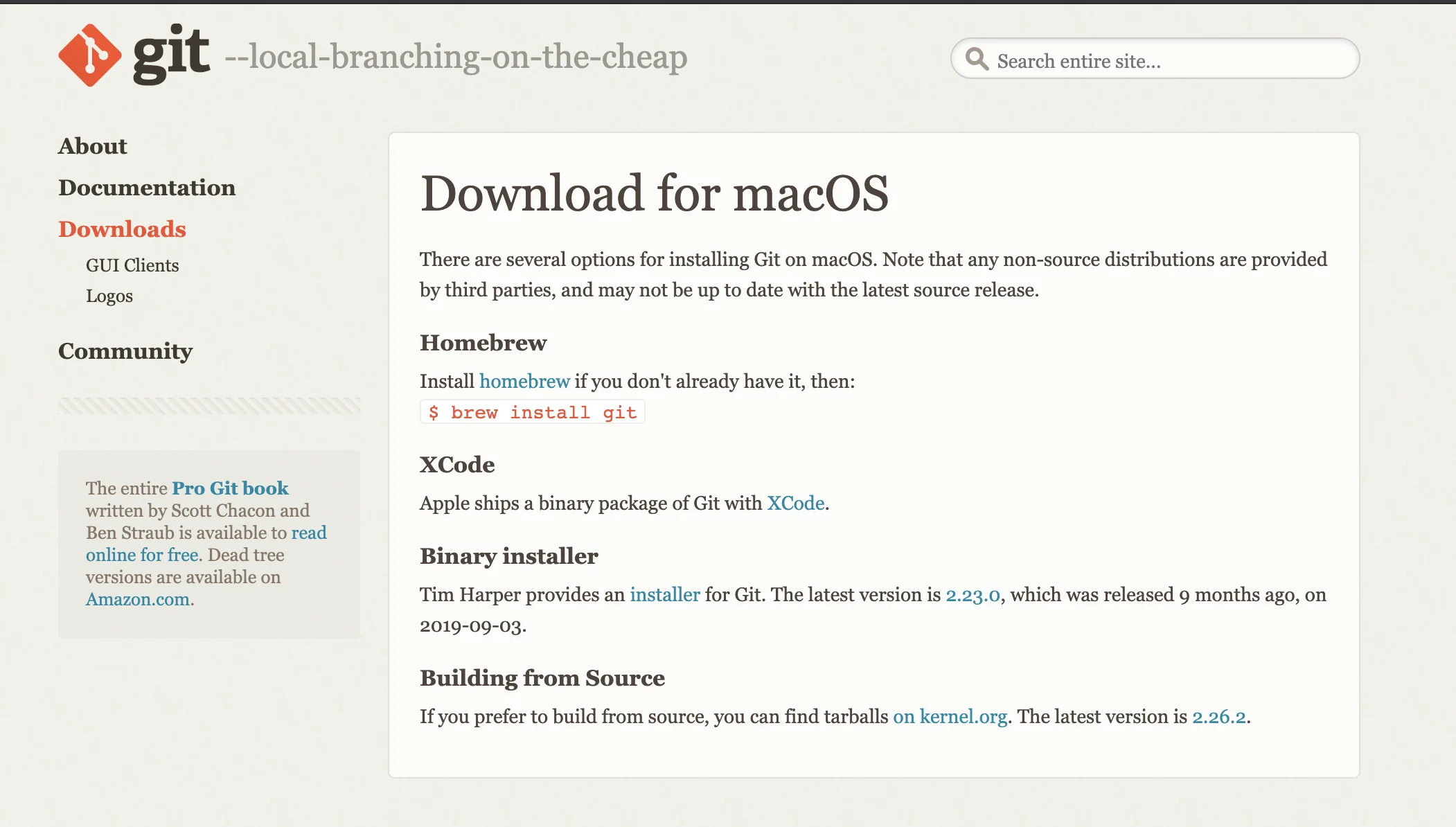 git 사이트에서도 이렇게 homebrew 사용을 권장한다.