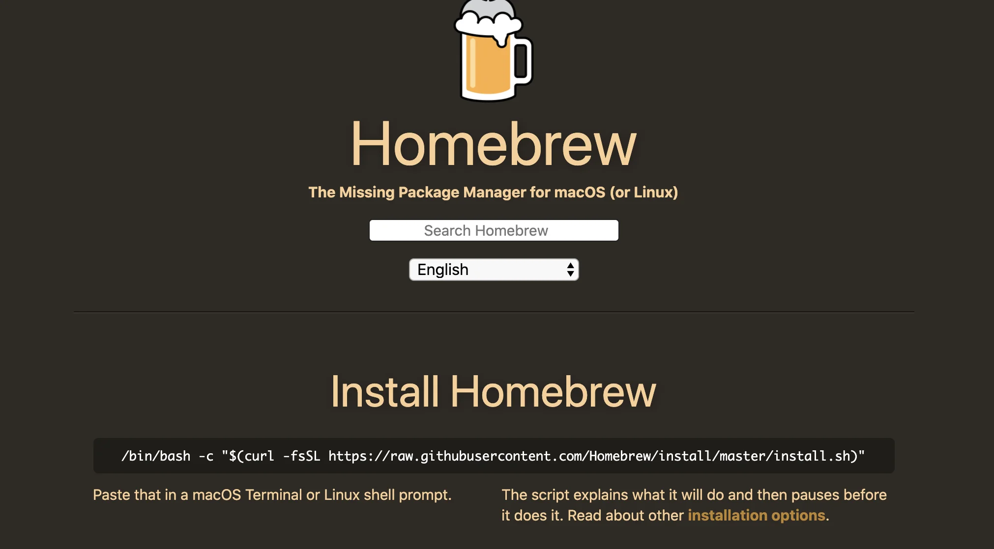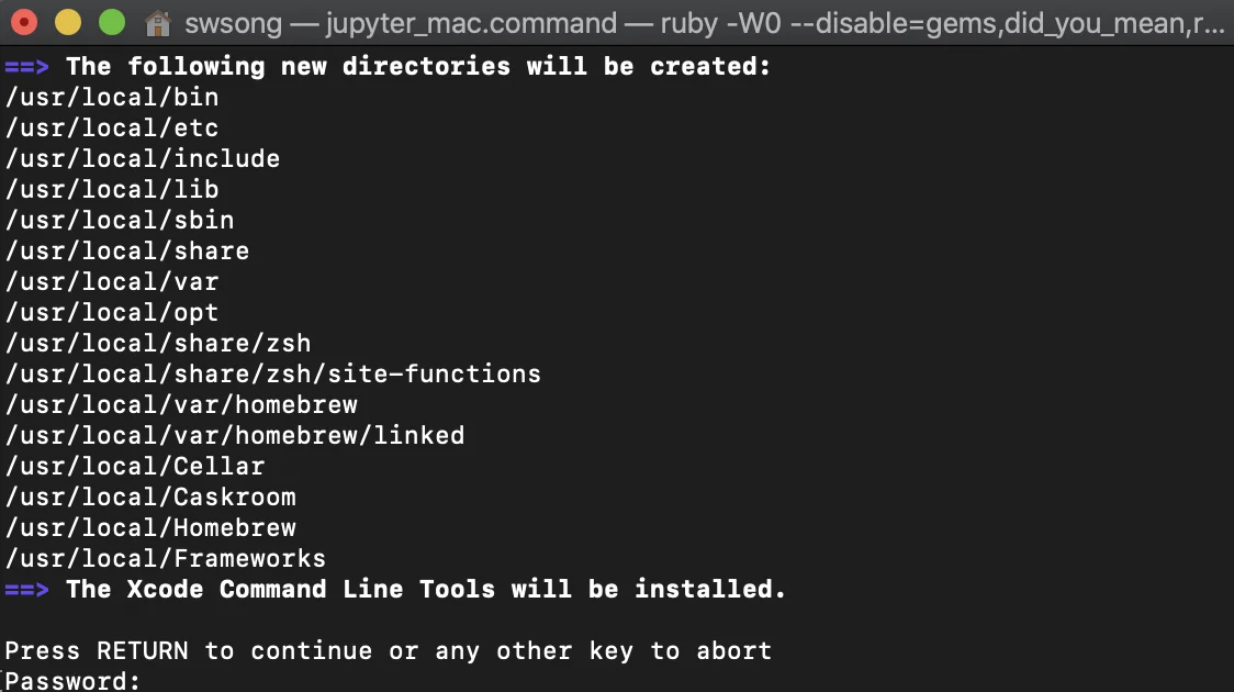 Install Homebrew 아래의 코드를 복사해서 터미널에 붙여넣는다.