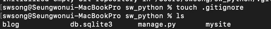 다음으로 .gitignore 파일을 생성해준다. git이 모든 파일을 탐색할 필요가 없기 때문에 굳이 추적하지 않아도 되는 파일들을 .gitingore 파일에 작성해주면, git은 추적을 통과하게 된다. 깃이 설치된 경로에서 아래 명령어를 실행한다.