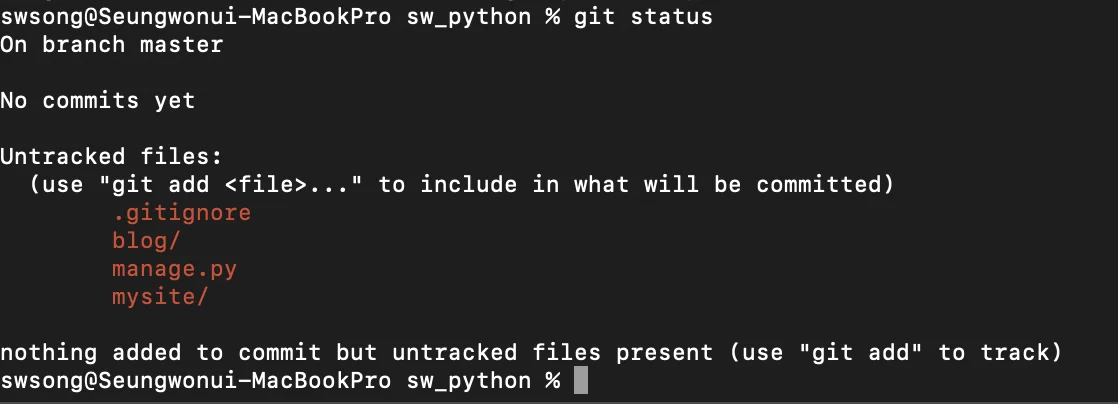는 현재 깃의 추적결과 (커밋 상태)를 확인해주니 습관적으로 실행해보도록 한다.
