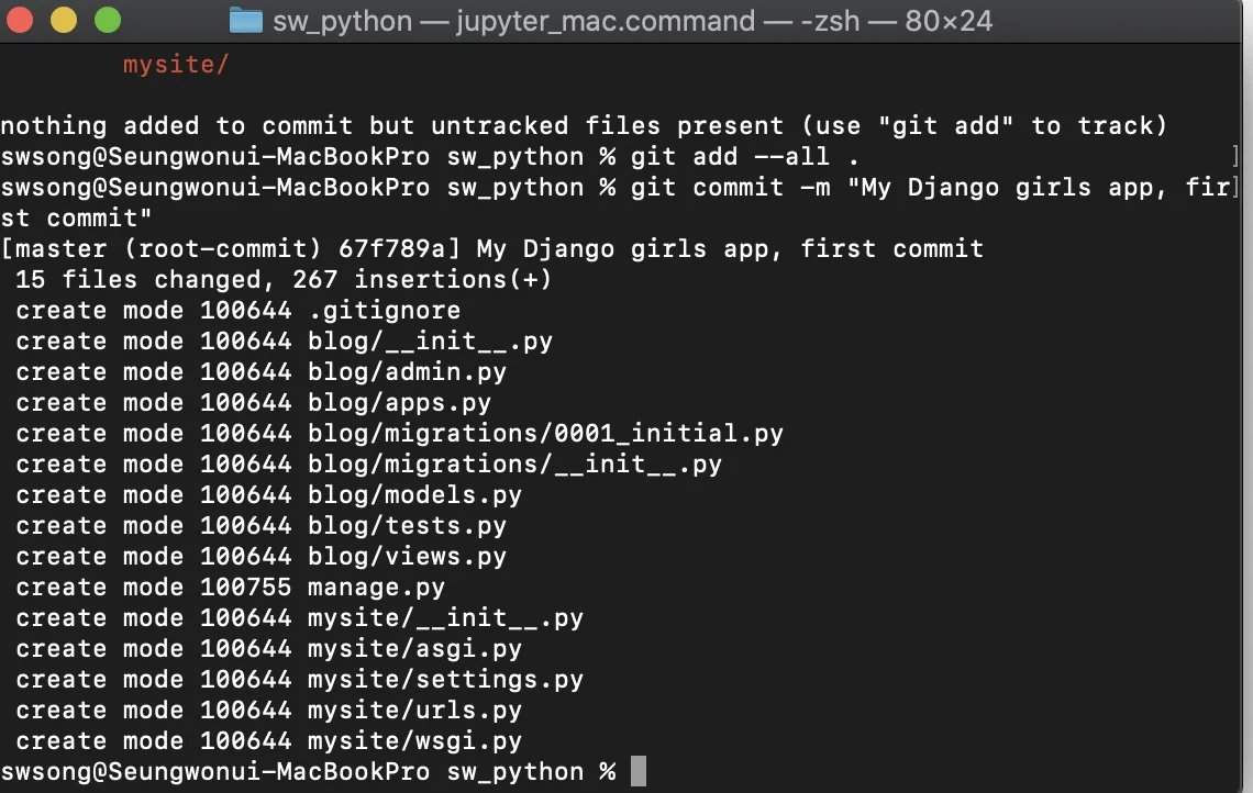 % git commit -m “My Django girls app, first commit”