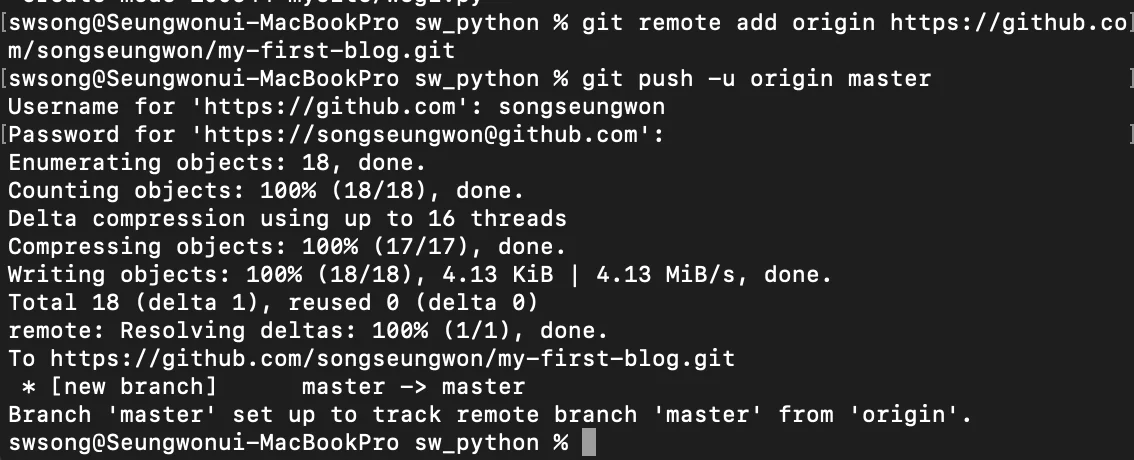 % git push -u origin master