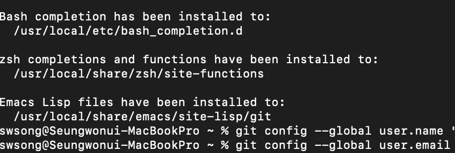 %git config –global user.email “~(이메일계정)~”
