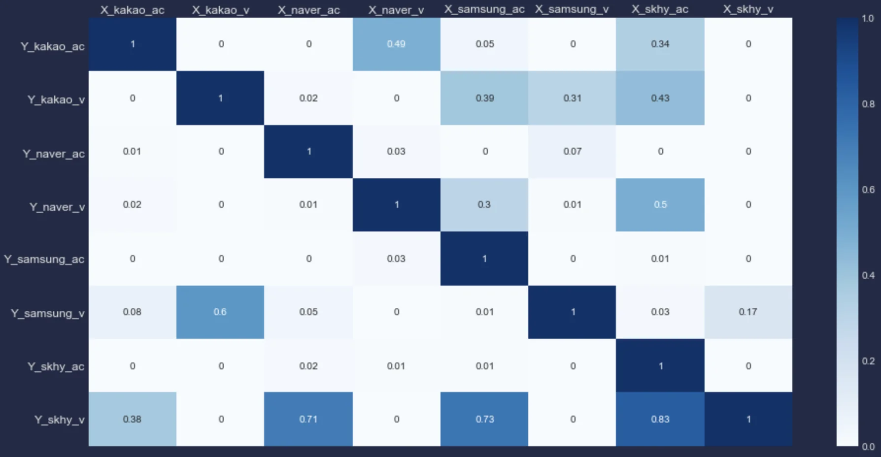 즉, 복합적으로 8가지 지표는 서로 연관이 있겠다는 합리적인 가정을 할 수 있겠다.