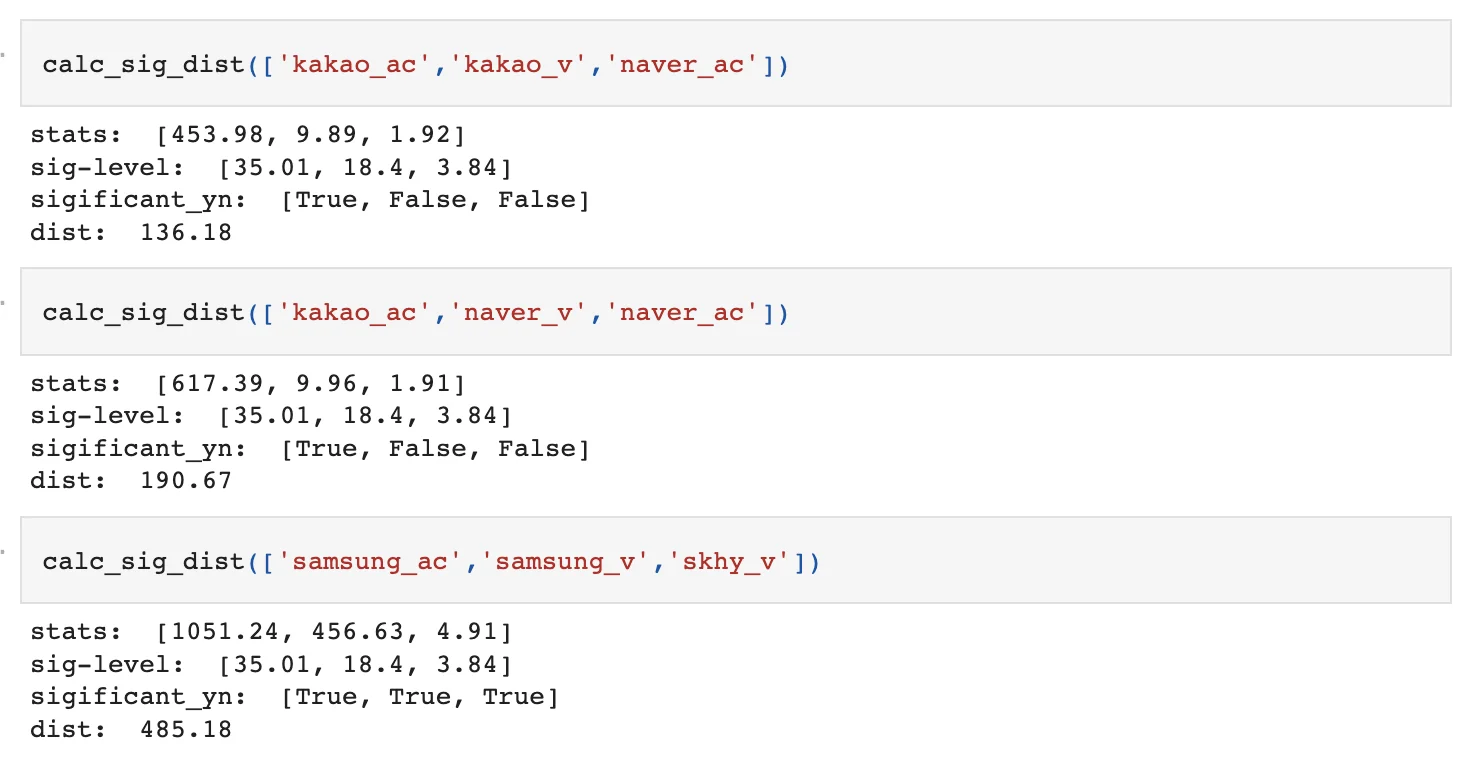 다만, 이렇게 봤을 때 이것이 유의한 수준인지 그렇지 않은지 확인할 수 없으므로 마찬가지로 검정통계를 실시한다.