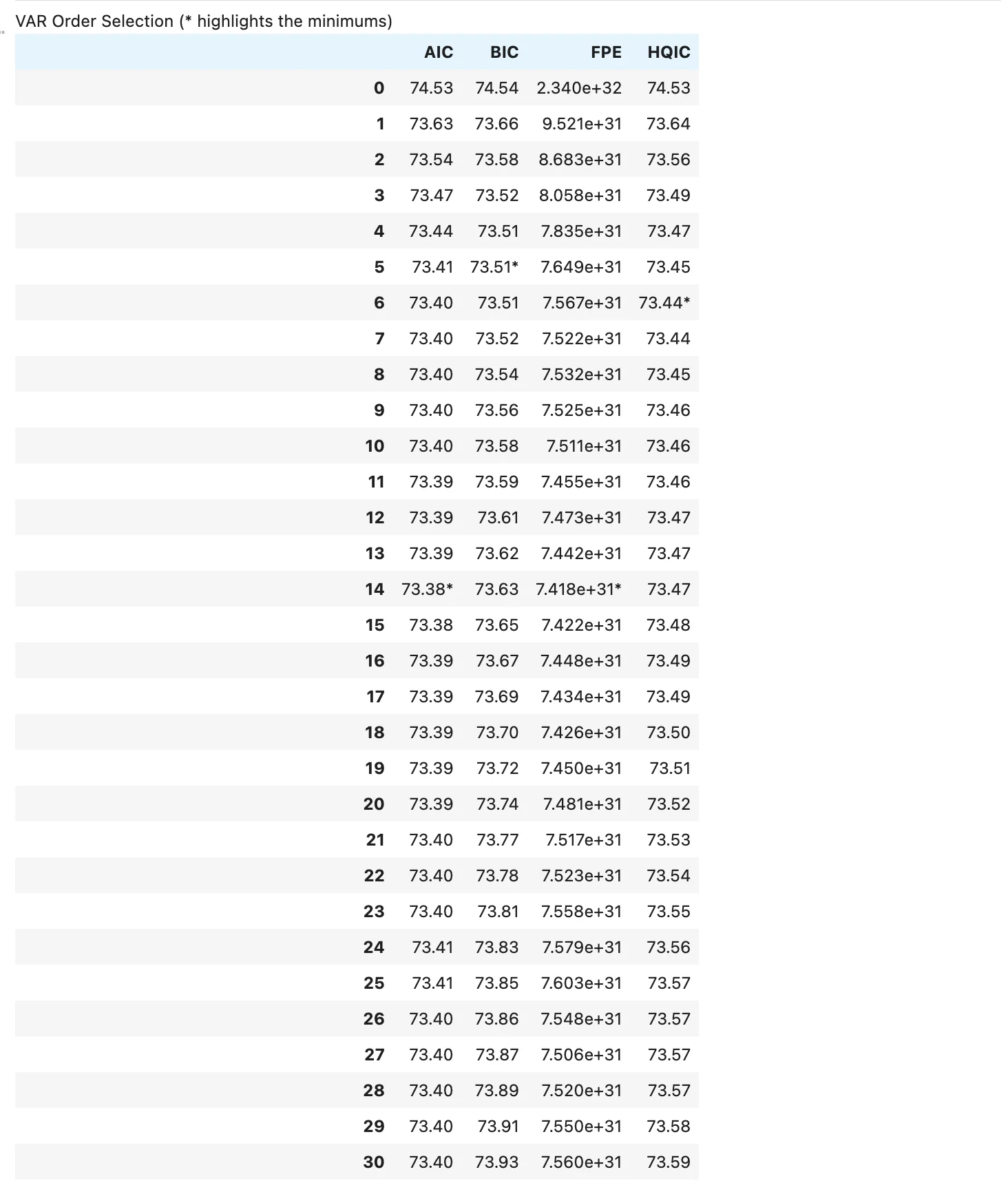 var.select_order(maxlags=30).summary()
