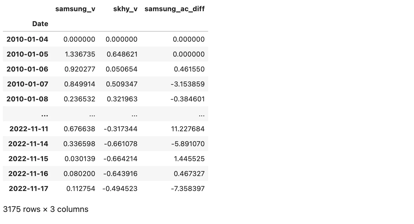 다음 단계는 1차 차분시킨 samsung_ac_diff도 원상 복귀시키는 것이다.