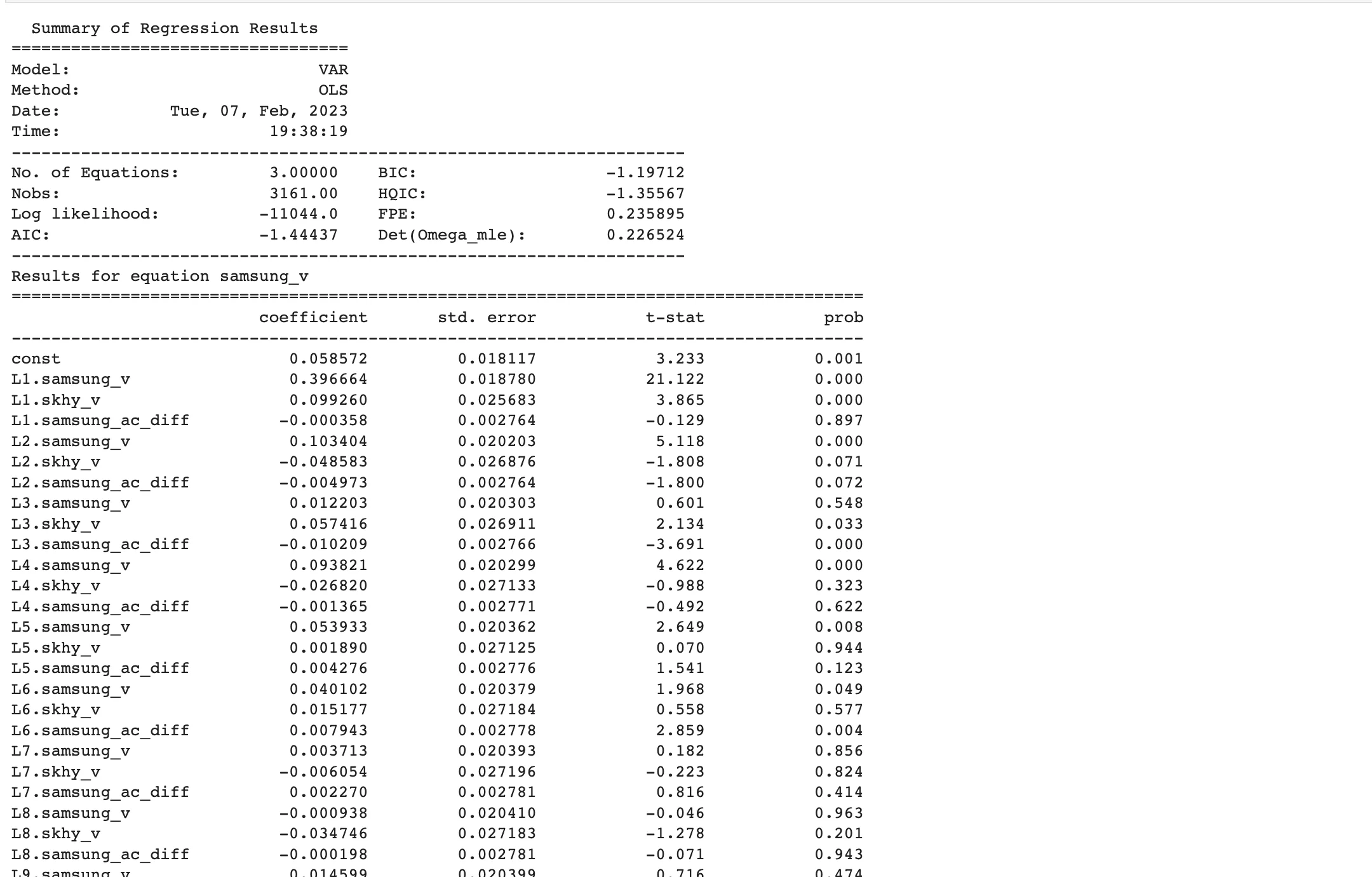 이제 다시 VAR 모델에 데이터를 태워준다.