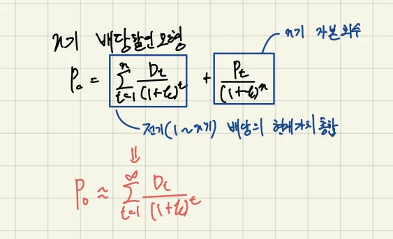 단, 이렇게 산식을 간단히 하였을 때 보통주는 우선주나 채권의 영구채와 동일하게 평가된다. 따라서 배당성장모형을 크게 2개 유형(무성장 모형, 항상성장모형)으로 나눠 정의한다.