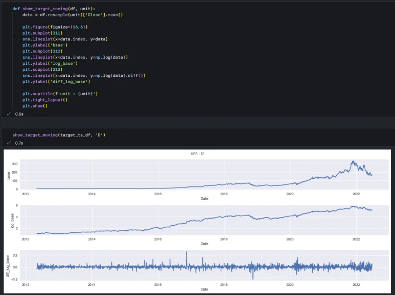 최근(2022-6 기준)의 가격이 과거 대비 매우 크게 상승해 있기 때문에 과거의 1%보다 최근의 1%가 그 등락 폭이 훨씬 크다. 따라서 이러한 과거와 현재의 스케일 차이를 줄여주기 위해 log 변환을 해줄 필요가 있다.