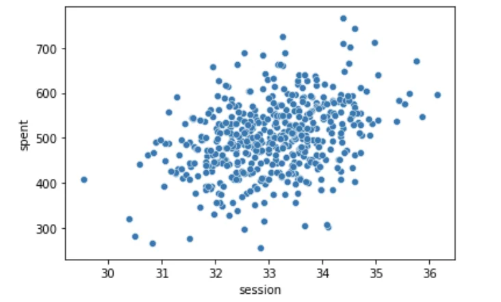 - H1: 유저의 세션 접속 시간이 길수록 연간 지출액은 높다. (주요 컬럼: spent~session)