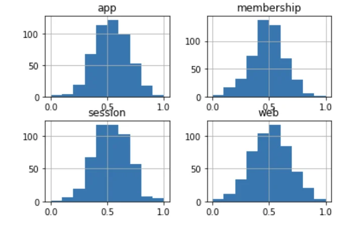 session과 membership은 동일하고 app은 10%씩 증가, web은 10%씩 감소하는 데이터 테이블을 생성했다.