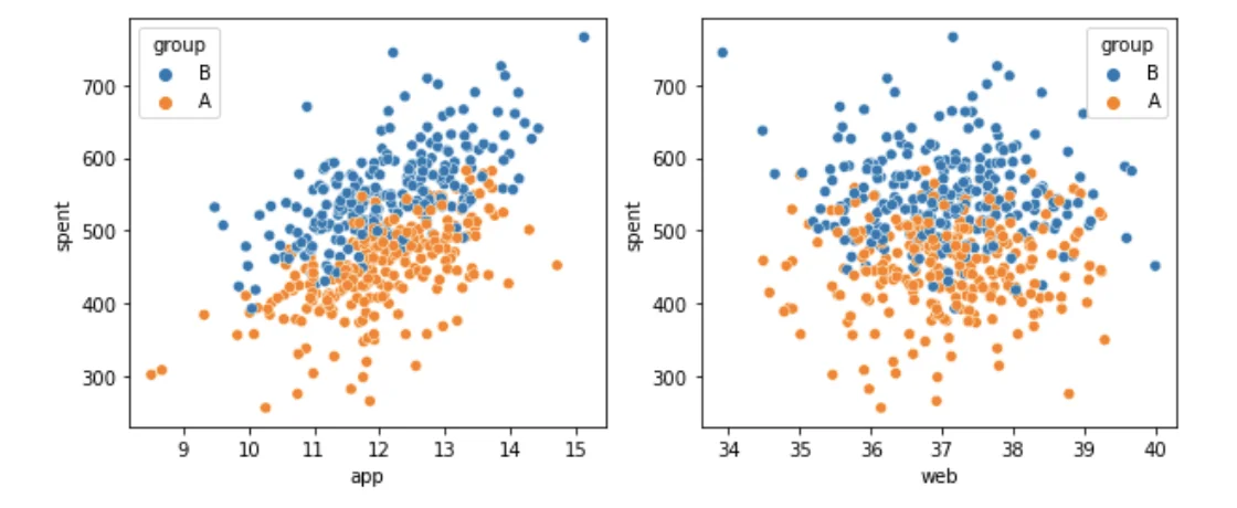 - H1: 앱 사용 시간이 많을 수록 연간 지출액은 높다. (주요 컬럼: spent~app)