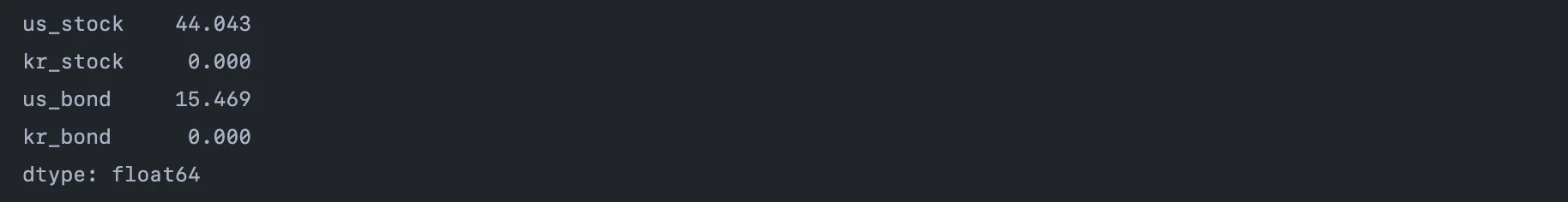 port_ratio /= port_ratio.sum() # 합계가 1인 랜덤 실수