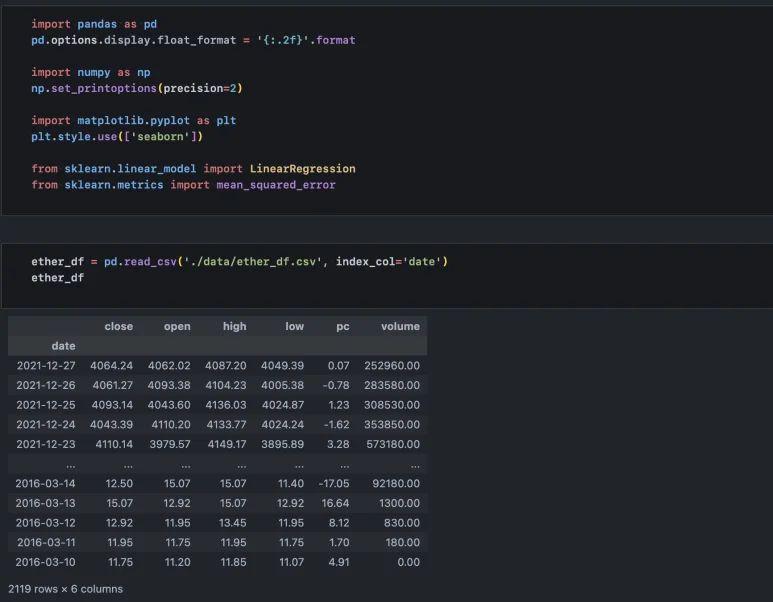 지금부터 회귀모형으로 이더리움 가격을 예측하는 모형을 만들어보고, 해석상 유의해야 할 점을 알아보자.