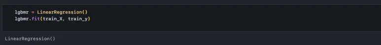 회귀 모형은 sklearn의 LinearRegression() 함수로 사용할 수 있다. 간단하게 학습 데이터만으로 모델을 적합시킨다.