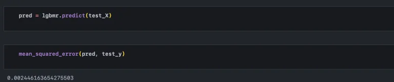 이제 test 데이터 셋에 대해 평가를 진행하고, 오차 수준을 확인한다. 오차는 mean squared 방식을 사용한다.