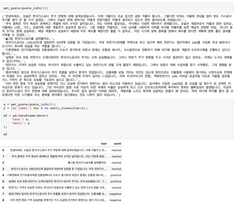 3-3. 단일 포스팅 내 텍스트 감성 분류