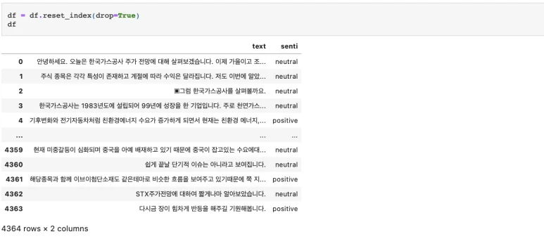 이제, 이렇게 얻은 문자열에 대해 감성 분류를 실시할 수 있다. 텍스트 클렌징 작업은 최대한 정교하게 할수록 좋다. 텍스트 수집에 정도가 없듯 텍스트 전처리 방법에도 역시 정도가 없다.