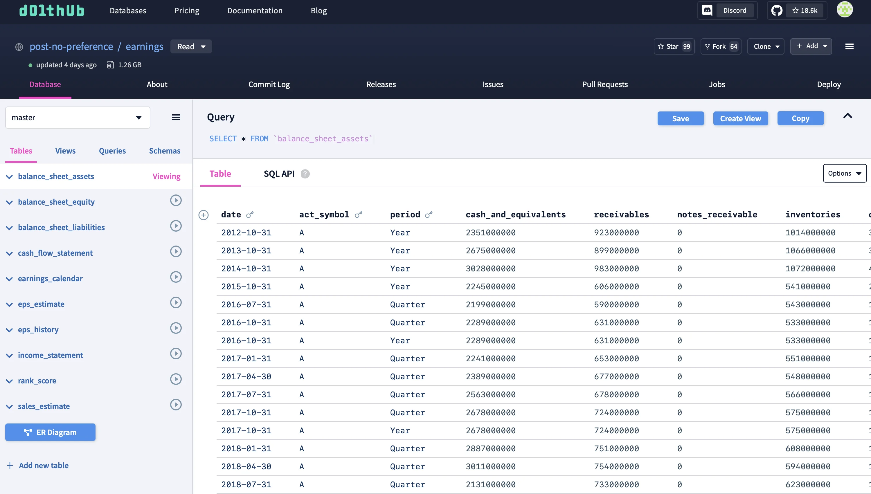 이제 자유롭게 필요한 데이터를 가공해 분석에 활용할 수 있는 상태다. 위와 같이 DoltHub로 기반 DB를 clone 해서 사용할 수도 있고, yfinance 등 다른 api를 통해 주기적으로 필요한 데이터만 가공, 적재할 수도 있다.
