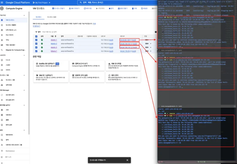 - GCP 가상 머신 4대 할당(e2-small 3대 + e2-medium 1대)