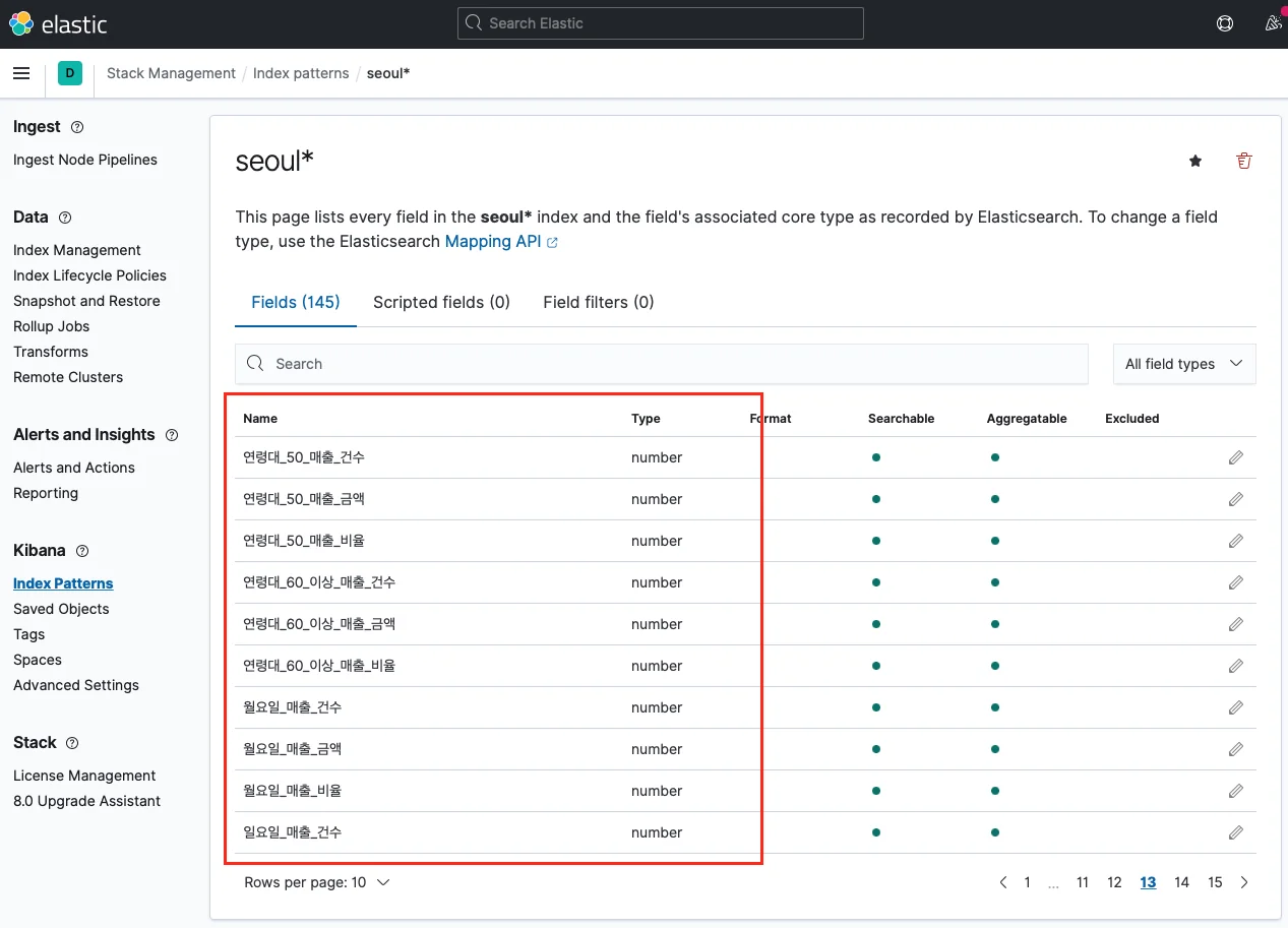 다음으로, int형을 지정해준다. default로 문자열 형태로 입력되는데 이러면 대소 비교가 되지 않는다. 따라서 logstash filter를 활용해 int 변환 후 elastic search로 보내준다.