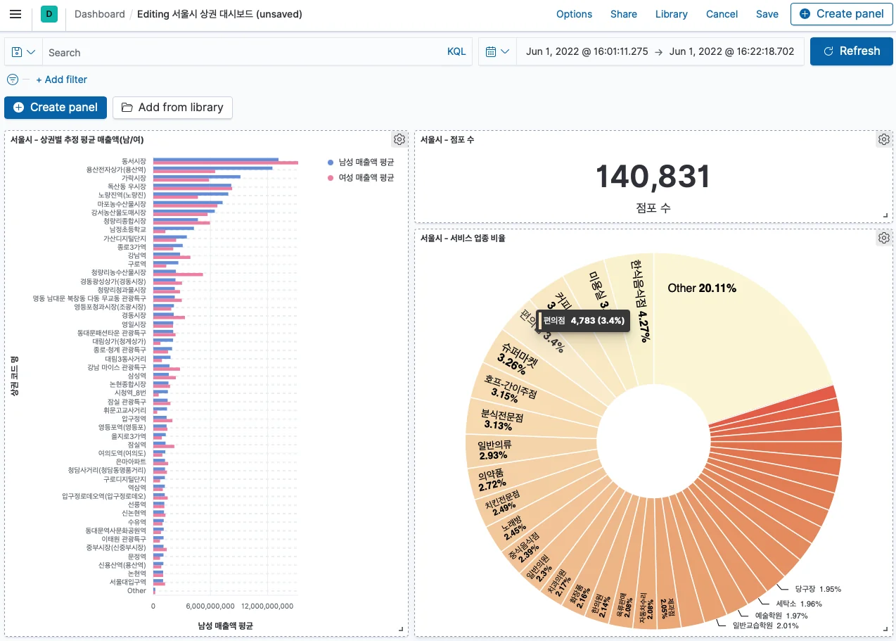 서울시 상권 추정 매출(서울시 열린 데이터 광장 제공)
