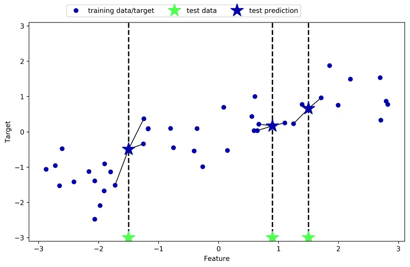 - (n > 1) 기존에 분포하는 값 중 가장 가까운 순서대로 n개의 값을 찾고, **n개 label의 평균 값(y_mean)**을 현재 Test값의 label로 지정한다.