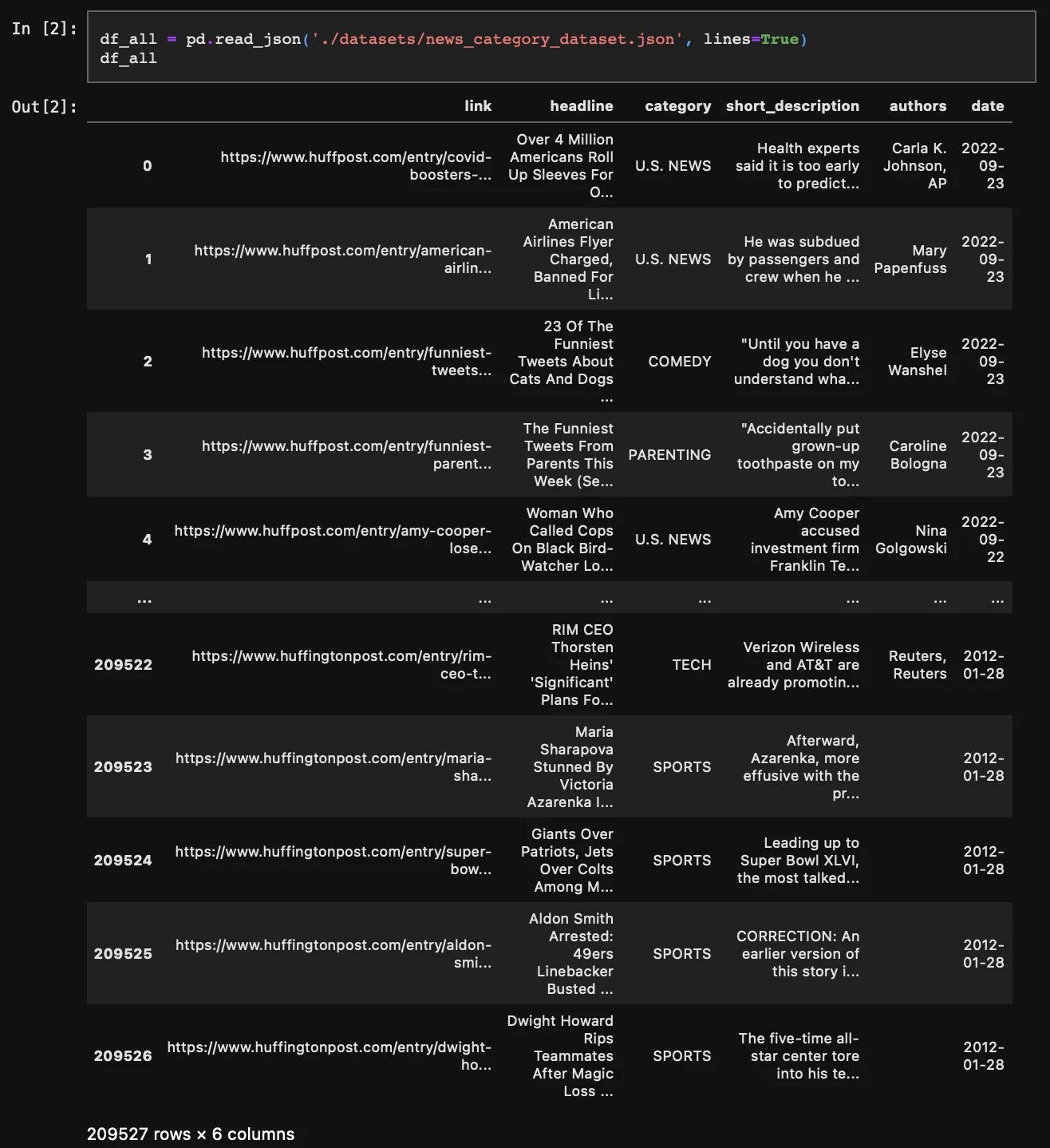 분석 대상은 HuffPost의 뉴스데이터이며, 아래 캐글 링크에서 다운로드 받을 수 있다.