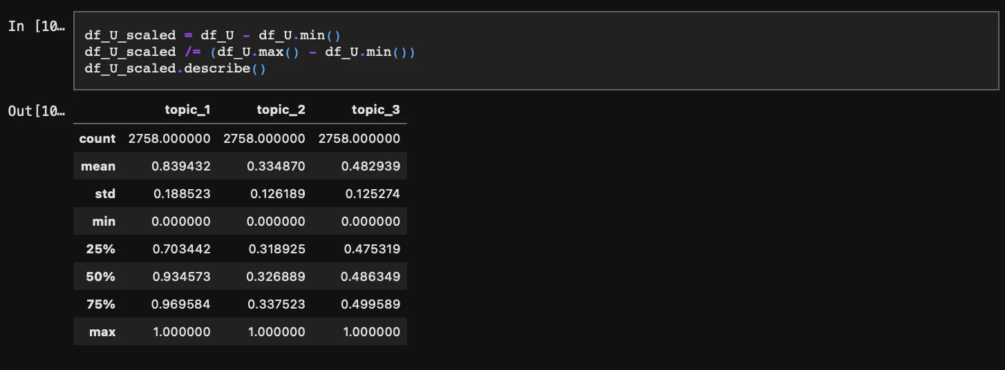 U를 데이터프레임으로 변환해줄 텐데, index를 기존 문서 인덱스에 맞게 지정해주는 것이 중요하다.