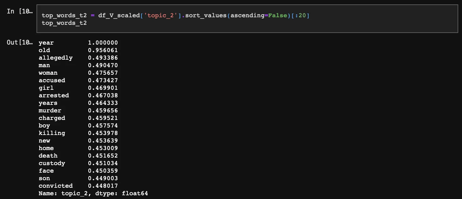 topic_2의 경우 상위 문서은 예상과 동일하게 일상에서 발생가능한 살인 범죄 등의 사건을 다루고 있다.