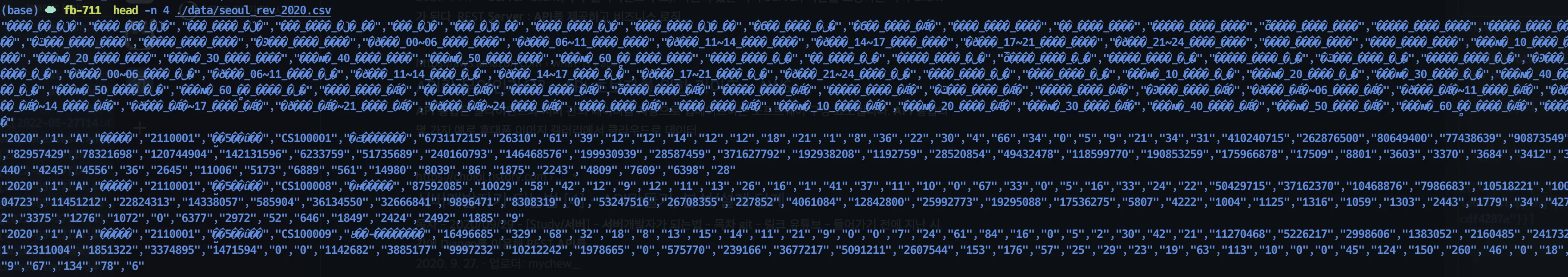 로컬 서버에서 지정된 인코딩 정보와 파일의 인코딩 정보가 일치하지 않는 경우 terminal에서 해당 파일을 읽을 때 아래와 같이 한글이 깨질 수 있다.
